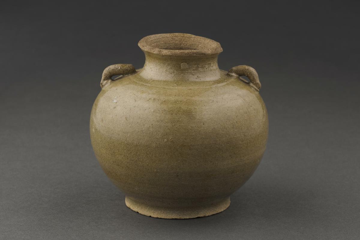 This pair of blue and white globular jarlets has a small opening with a glazed rim. The body consist of two vertical lines of Chinese characters probably the name of the maker of these jars. They were used to store dried food.