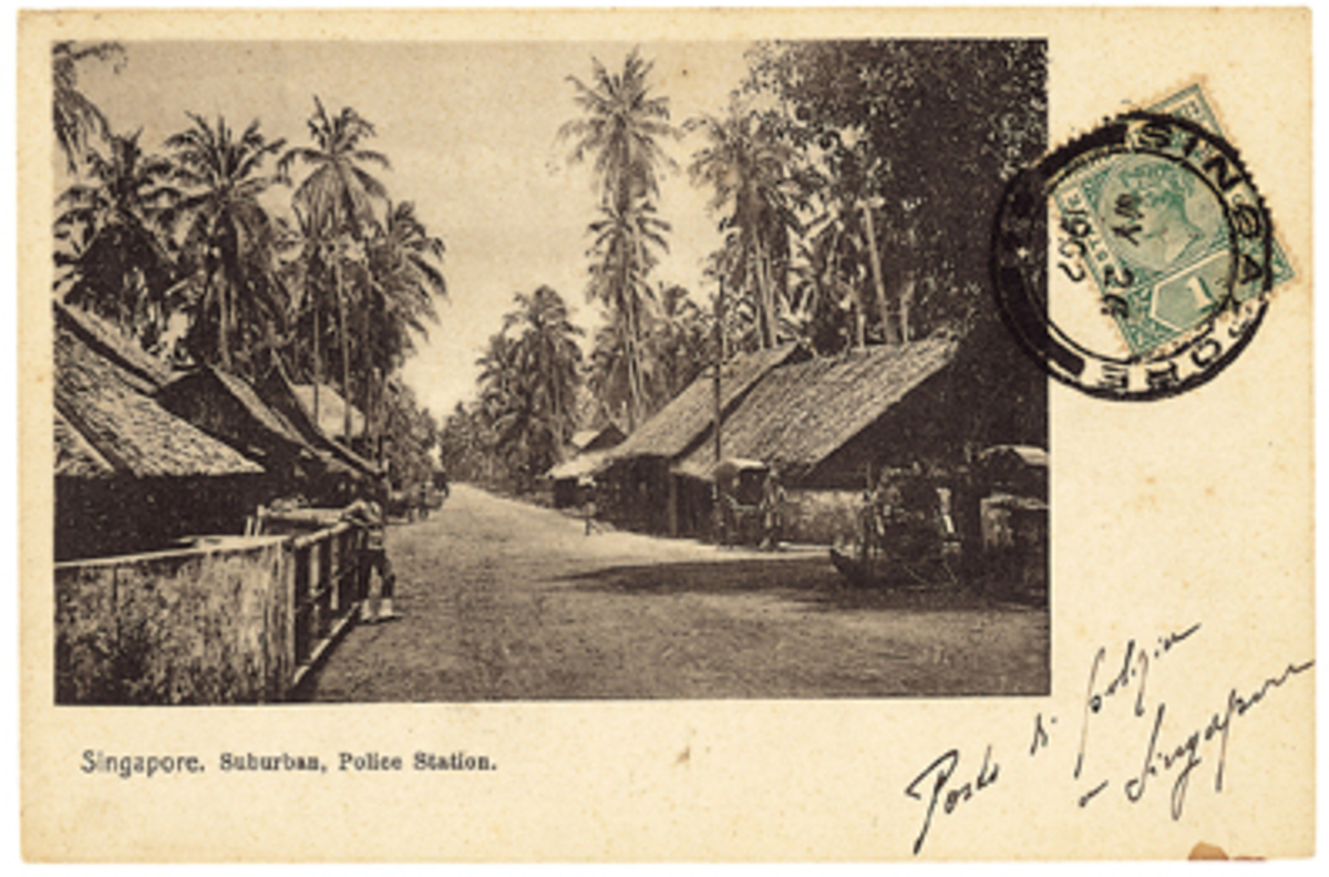 This is a view of an auxiliary police station at Geylang. The early police force was mainly made up of Malays and Indians; the colonial government did not trust the Chinese community at that time because nearly 60 percent of them were members of the ‘hoey’ (secret societies). By the early 1900s, with the explosion of Chinese immigration into Singapore, the government had no choice but to recruit Chinese into the police force.