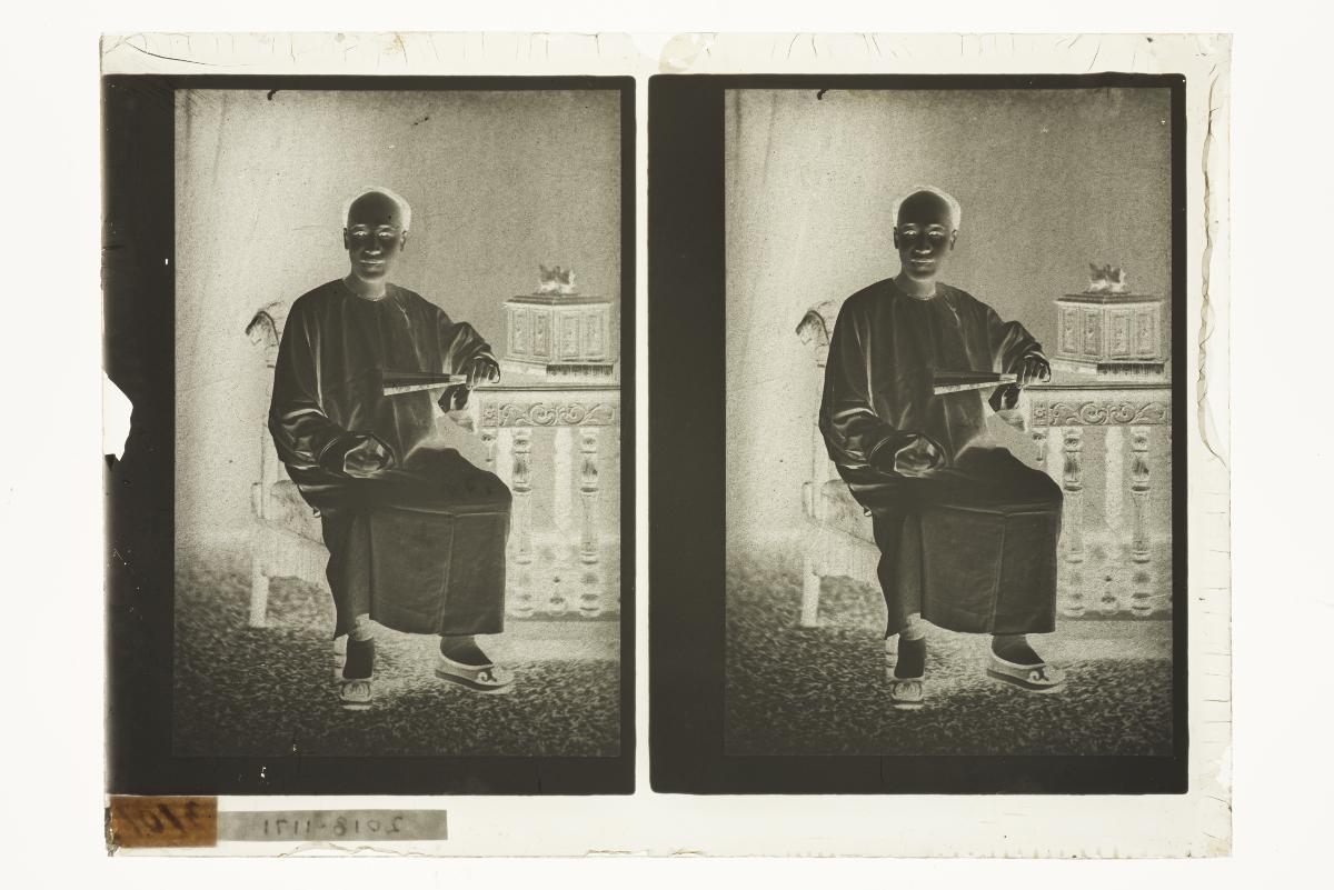 This is a glass plate advertisement for Hua Chang Studio Photography. As stated on the glass plate, the photography studio offered services such as artistic photography, wedding photography and the enhancement of colours on photographs. The advertisement also promoted ‘superior Chinese photography skills and German lenses'.