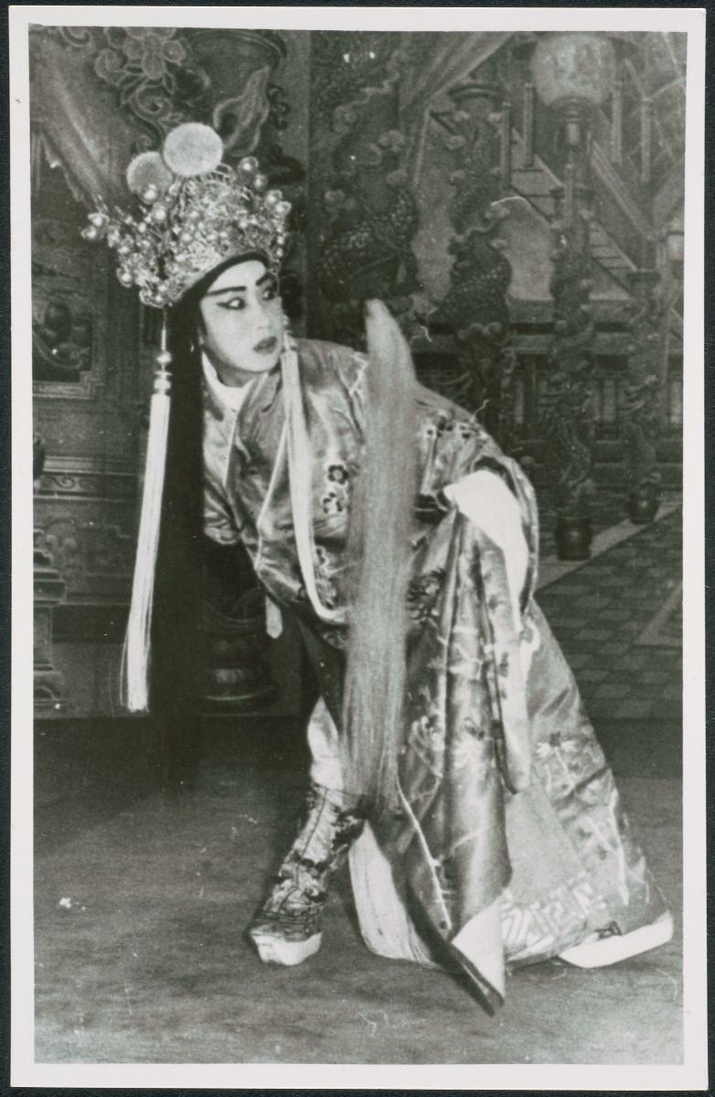 The well-known Chinese opera actress, Phan Wait Hong, is pictured here dressed as a 'lao sheng', the old male role that she is remembered by. In the world of Chinese opera, 'sheng' (the male) is one of the four main characters that appears on stage, the others being 'dan' (the female), 'jing' (the painted face) and 'chou' (the clown). The photograph depicts Phan wearing a white beard, an indication that the male character she is portraying is older than 60 years of age. Born in Shanghai, Phan first came to Singapore with a Chinese opera troupe in 1926, gradually establishing herself as a lead actress on the performing circuit. Over the years, as her reputation grew, she travelled frequently to perform in neighbouring countries. In 1993, Phan received the cultural medallion and is often regarded as Singapore’s most celebrated Beijing opera doyenne.