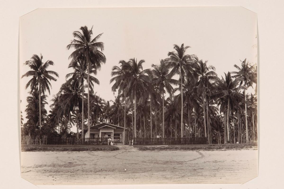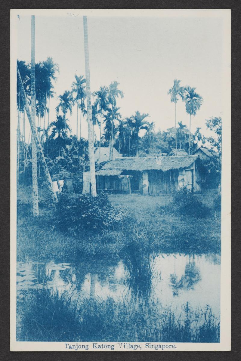 This is a photograph of a house at Tanjong Katong, which had stretched from Upper East Coast Road to Tanjong Rhu. This house is surrounded by coconut trees, which were found in abundance at the Grove Estate, a vast coconut plantation that stretched from Tanjong Katong Road to the former Grove Road, now known as Mountbatten Road. Tanjong Katong means 'turtle point' - Katong being a species of sea-turtle that is now extinct.