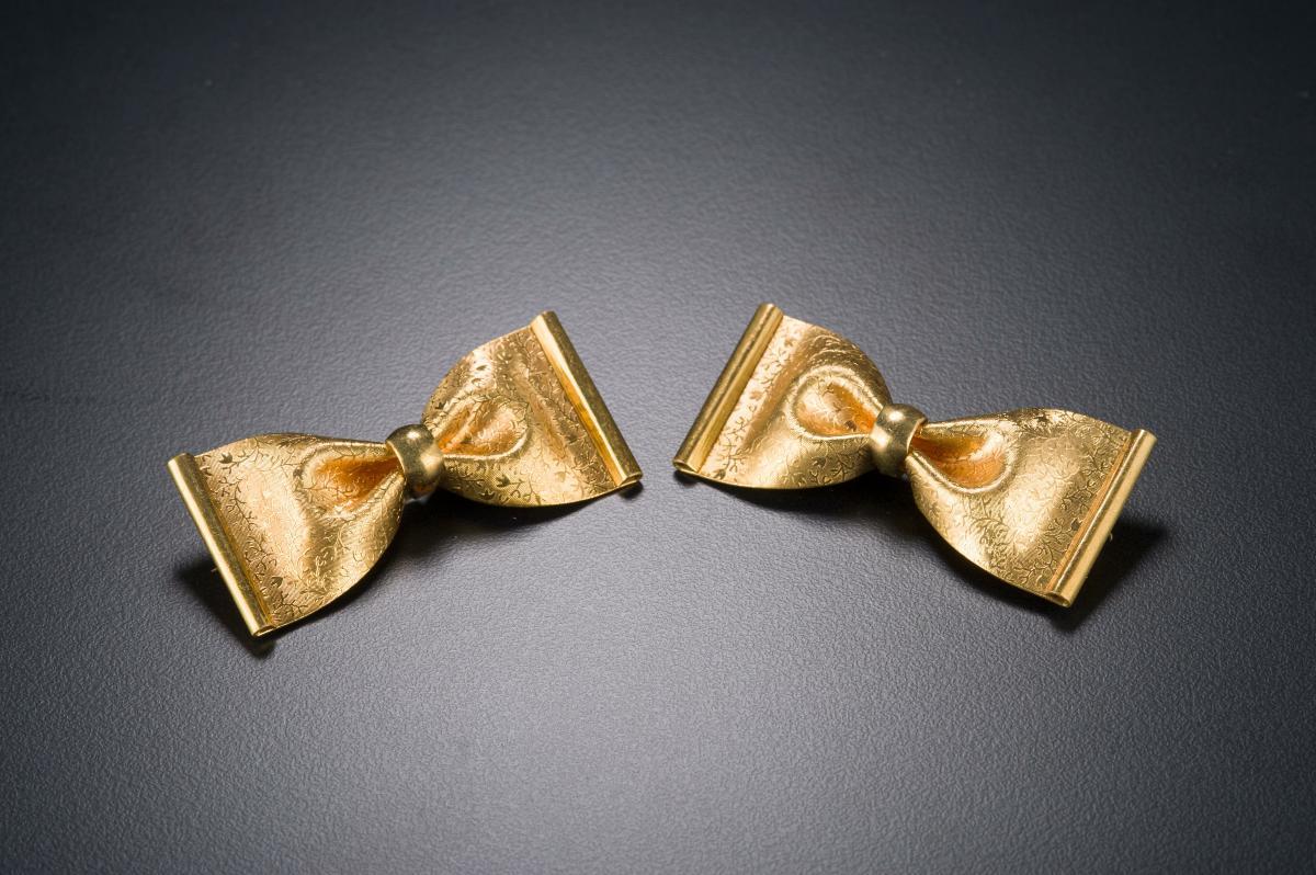 This pair of brooches are decorated with floral motif. They were used to fasten the blouse worn by women.