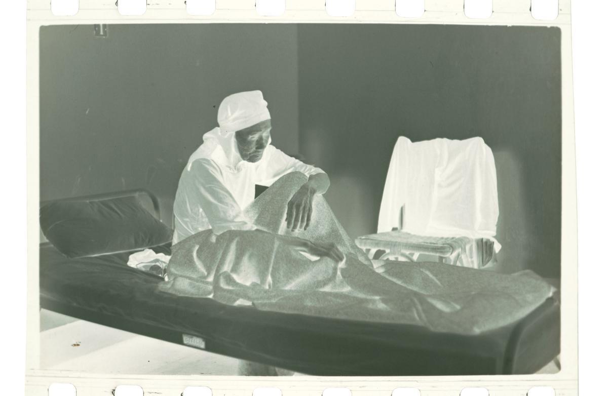 Negative photograph of an itinerant hawker by Lee Sow Lim