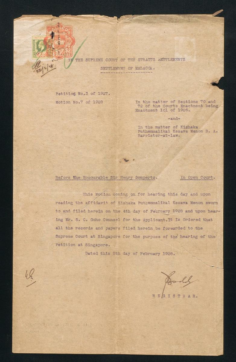Petition, Supreme Court of the Straits Settlements of Singapore