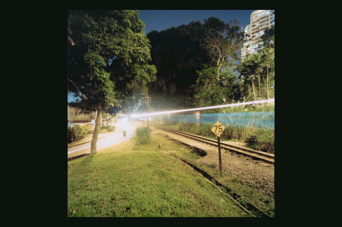 This is a photograph of the Malaysian KTM passenger train Senandung Sutera (SS) 24 as it passes next to Rifle Range Road at 1048pm. The SS24 was the last train to depart from the Tanjong Pagar Railway Station for the Malaysian capital of Kuala Lumpur every night when the route was still in service.The photograph is part of a series of images of the SS24 taken by award-winning Singapore photographer Darren Soh, who spent several months capturing images of the train along its nightly route. The first 26 images in the series are in chronological order, charting the train's journey from Tanjong Pagar to Woodlands. The last two photographs capture the final journey of the SS24 on 30 June 2011 before the seizure of railway operations at the Tanjong Pagar station on 1 July. To mark the occasion, the train was piloted by Sultan Ibrahim Iskandar of Johor, who was joined onboard by the members of the Johor royal family and officials, current and former KTM staff, KTM train enthusiasts and some 50 journalists from Malaysia and Singapore.