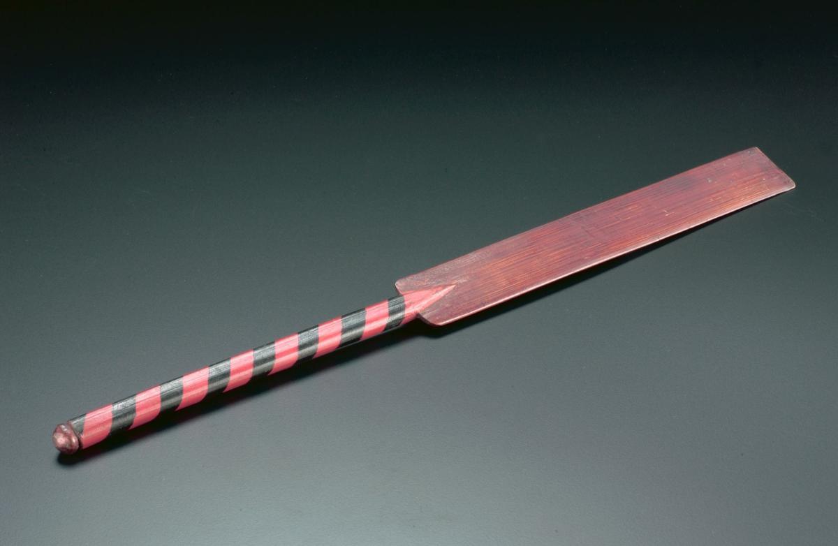 This lacquered kitchen utensil is reported to have been used for picking satay meat although how it was actually used remains unclear.