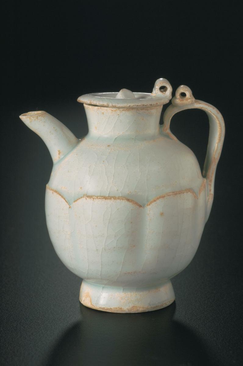 This three-legged bronze wine vessel or 'jia', splashed with gold was used for warming and serving up wine. Supported on three blade-like legs, the vessel features a dragon head handle and a pair of rectangular posts with conical caps, which were used to lift the vessel after it had stood in the fire to warm the wine.This wine drinking vessel (jia), together with the 'gu' beaker and another tripod vessel, the 'jue' formed a basic set for wine drinking during the Shang (C.1600-1027 BCE) and Zhou (c.1027-256 BCE) dynasties.