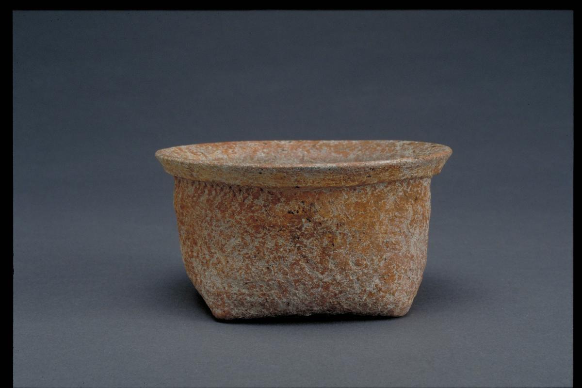 This pot has a globular body and is decorated with stamped geometric motif.Malay pottery was traditionally hand-moulded without the use of a potter’s wheel. They consist mainly of household utensils such as cooking pots, dishes, storage vessels for water and incense braziers. Many take their shapes from natural forms such as fruit or vegetables. They are decorated with stamped or incised floral and geometric motifs.