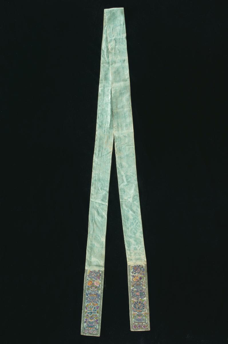 This attire was worn by Tan Kah Kee’s (a Chinese businessman, philanthropist and community leader) daughter on her wedding day. She married a Peranakan man from Malacca. The top features auspicious floral motif which symbolises fertility and feminine beauty.