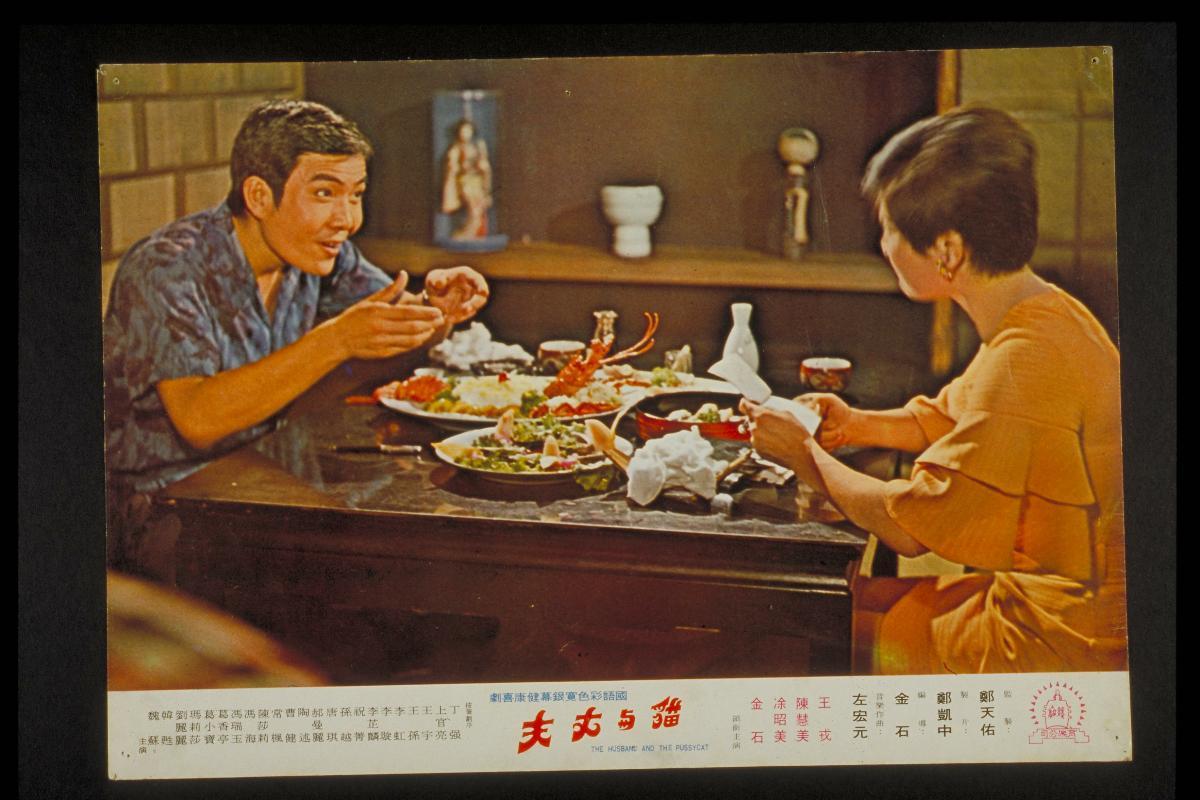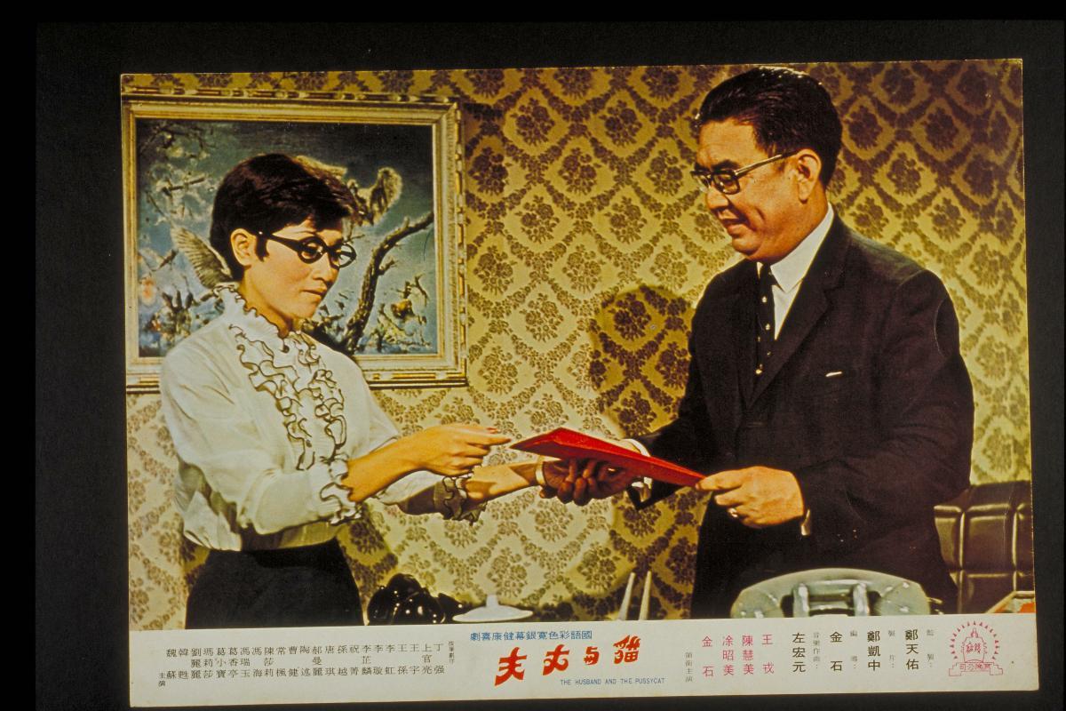 This is a film advertisement of a Taiwanese production called ‘The Husband and the Pussycat’, starring Wang Jie and Chen Huimei. The advertisement for the film used screenshots taken directly from the film. Such an advertising style was unique to the 1960s and 1970s.