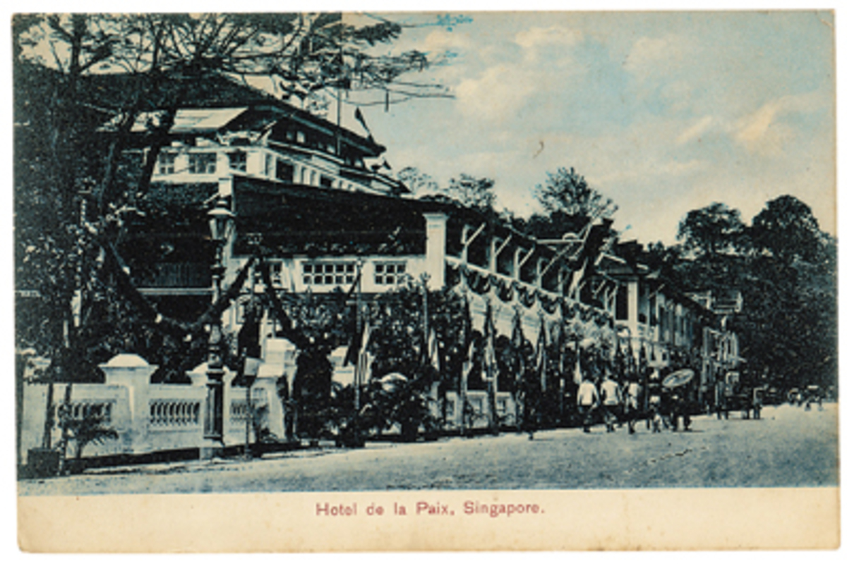 One of the pioneer hotel establishments in colonial Singapore, the Hotel de la Paix was established in 1865. It occupied the premises of the building originally built by the prominent architect G.D. Coleman to serve as his private residences. Commonly referred to as Coleman’s House, this building situated along Coleman Street was occupied by various businesses following Coleman’s departure from Singapore in 1841. The Hotel largely operated from the building until 1914, with the exception of a brief period in the 1880s when the premises were rented by prominent businessman Tan Yeok Nee. The site where the building once stood is now occupied by the Peninsula Hotel and Shopping Centre.