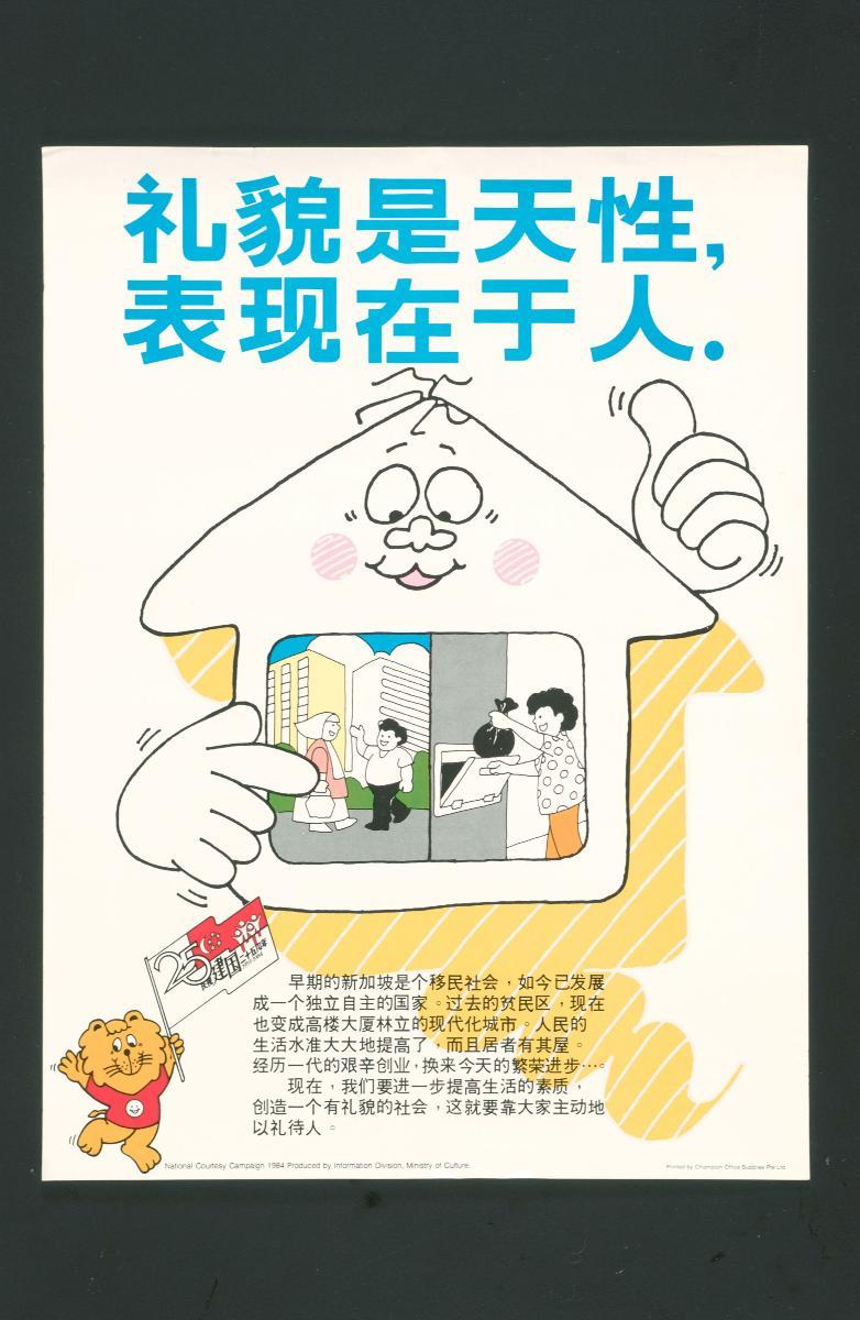 The Courtesy campaign began in 1979 in an attempt to encourage Singaporeans to show courtesy, consideration and kindness to one and all. The campaign mascot, Singa the lion, was introduced in 1982 and it has appeared on posters, billboards and various media advertisements.