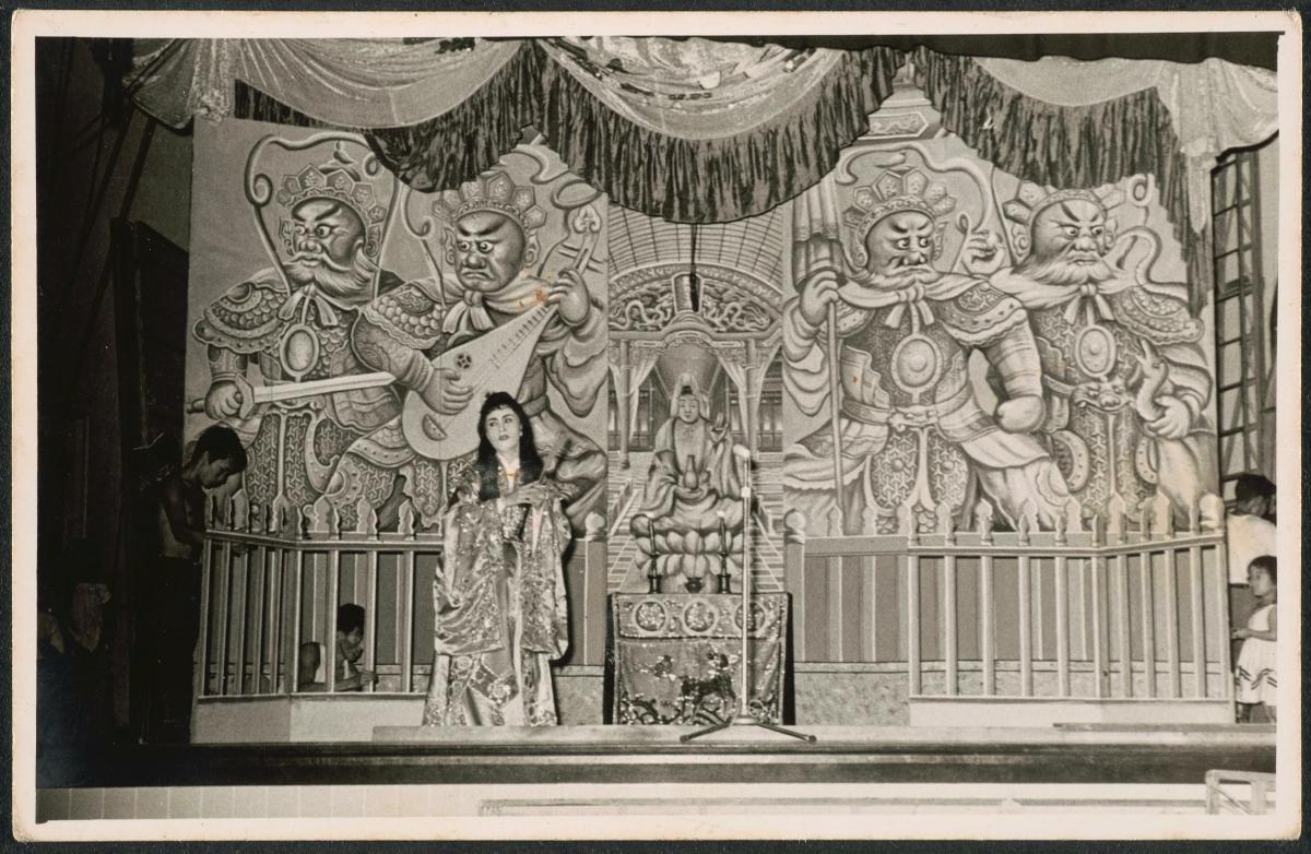 Apart from the streets where temporary stages were erected, Chinese opera performances were also played out in permanent theatres, as seen in this photograph. Also known by the Malay term ‘wayang’, which means ‘performance’, Chinese opera in Singapore can be traced back to the 19th century with the arrival of Chinese immigrants. Up until the 1930s, wayang was a popular performing art, both as a platform for religious worship and as a cheap form of entertainment.