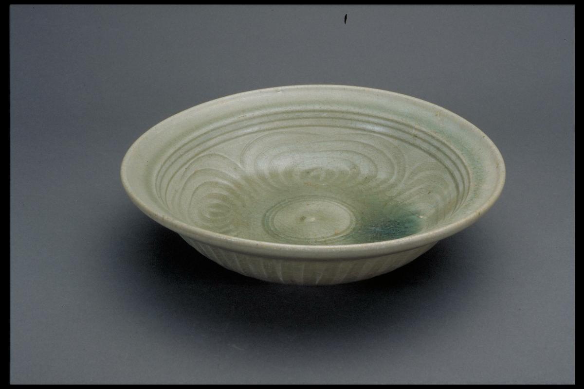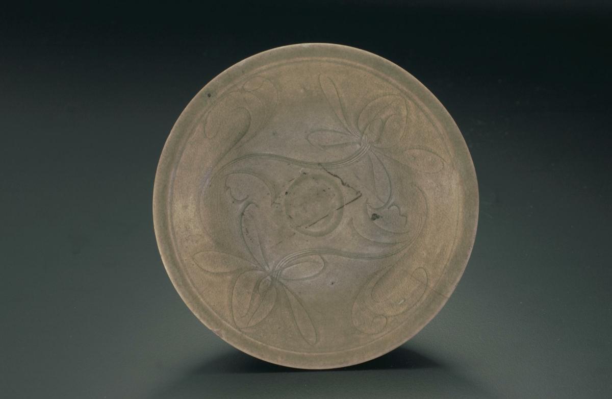 This Ding ware has moulded decoration of beautifully carved floral design incised on the interior. The central design comprises a peony and a butterfly. Double incised lines add to the serenity of this natural scene. A copper binding covers the rough unglazed rim on which the bowl rested during firing.Considered 'one of the five great wares', of the Song dynasty, Ding wares are thought to have evolved from the northern whitewares of Henan and Hebei during the Tang dynasty (618-906). High quality Ding wares were produced in the 11th century and were widely imitated. The use of coal as kiln fuel and increased firing temperature gave these wares their much-prized ivory tone.