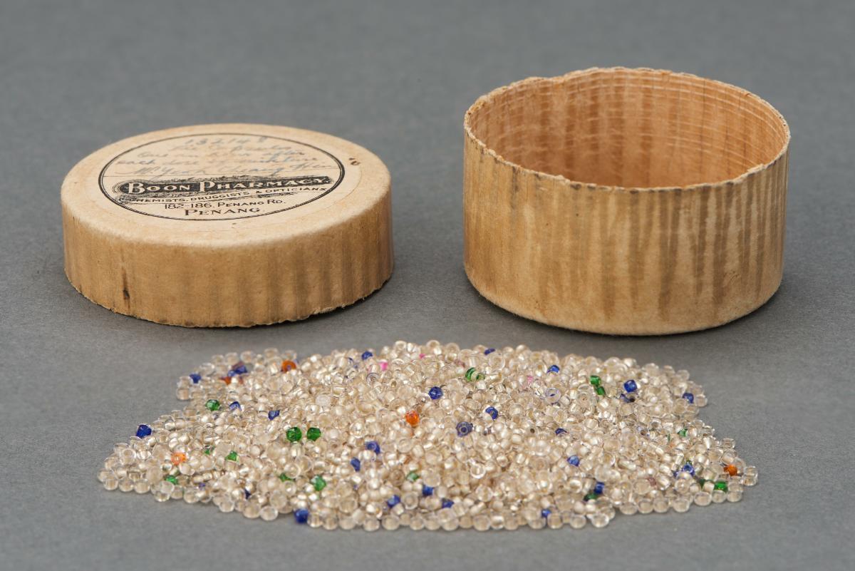 Medicine box with the label 'Seah Lee Boon, Bussorah St., Singapore'