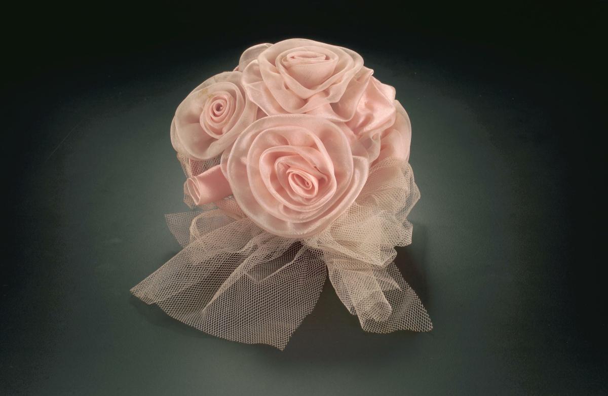 White pill box hat with small white satin flowers