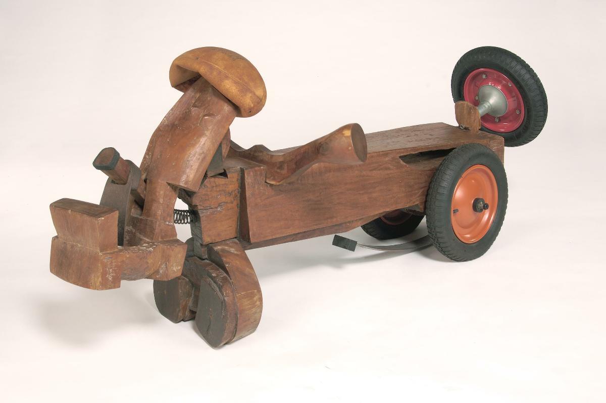 Nandi is the vehicle of Shiva, a Hindu deity famous for his reclusive nature and unconventional lifestyle. In south India, this Nandi vahana (bull vehicle) carries the mobile images of Shiva, and his consort, Parvati, which are placed atop, and taken out in a procession through the town. This graceful animal has a great presence and candid expression, notice the edge of the tongue leaping out of its mouth. Such vehicles are plated in silver and gold and covered with realistic paint.