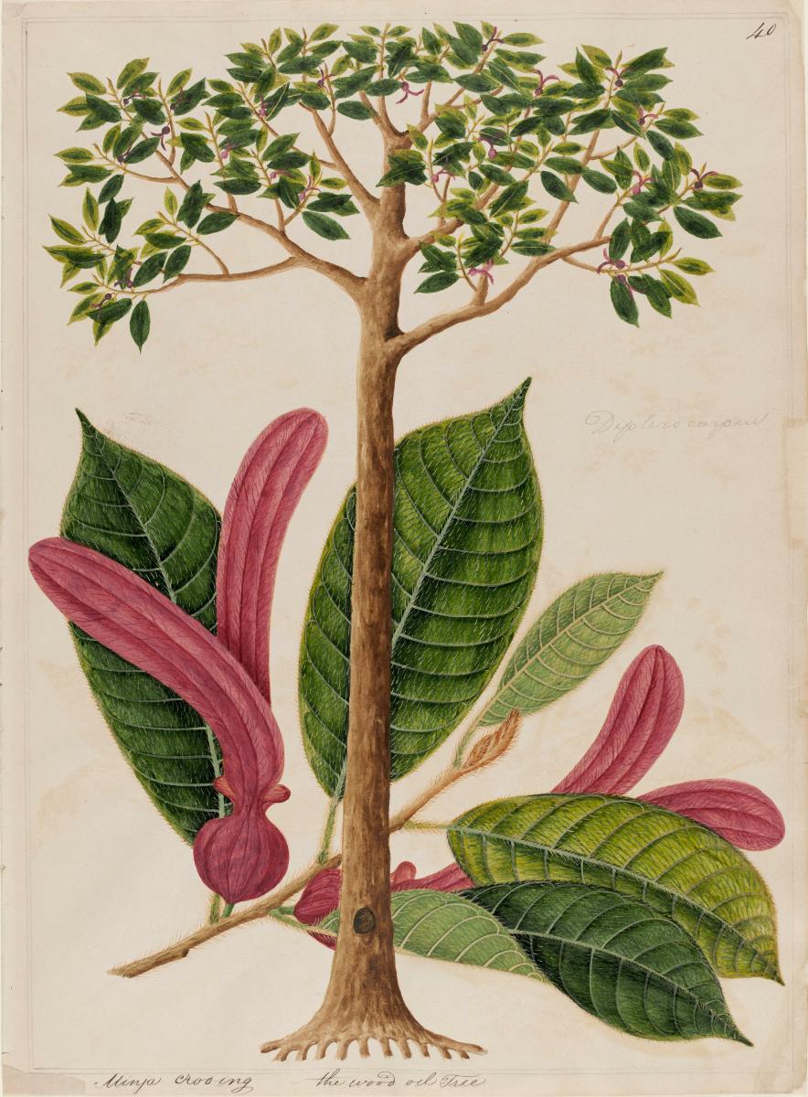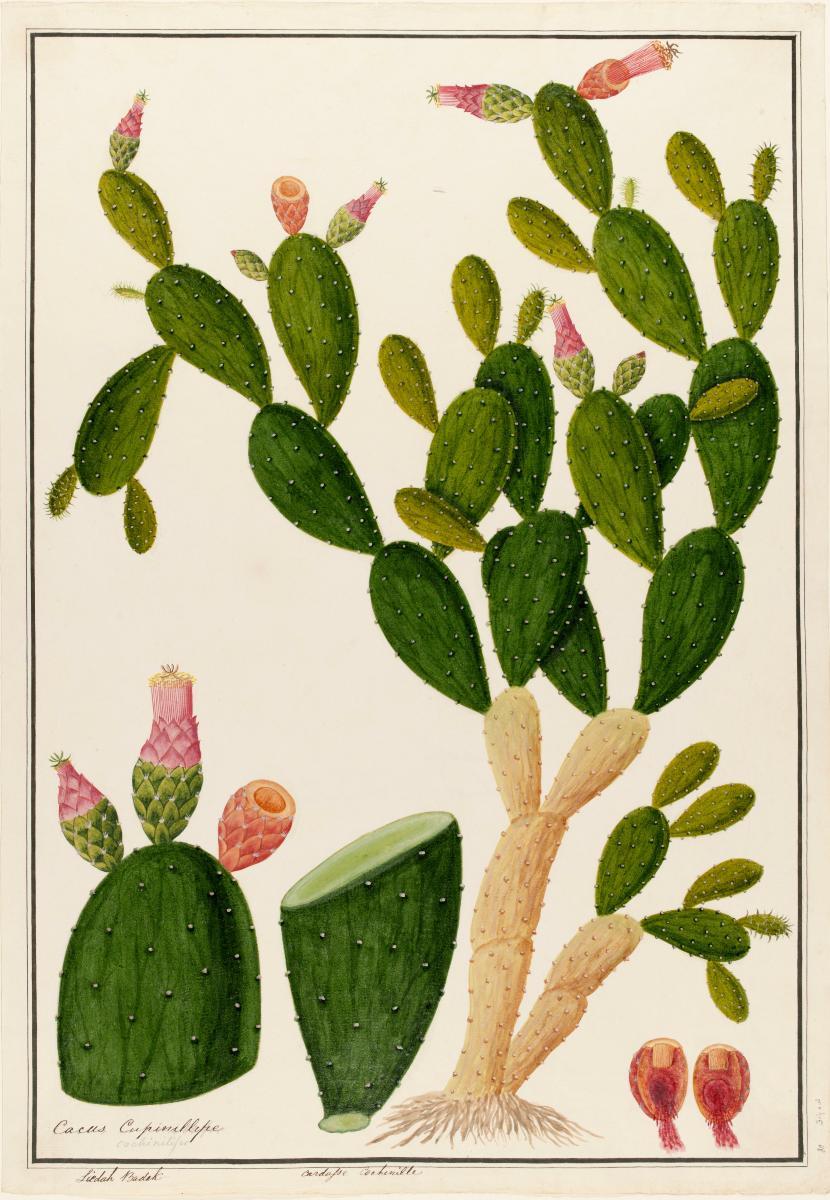 This painting of Castor Oil Plant, which is also known by its scientific name of Ricinus communis, can be found in the first volume of the the William Farquhar Collection of Natural History Drawings. The collection consists of 477 watercolours of flora and fauna that had been painted for William Farquhar when he was the Resident of Malacca between 1803 and 1818, before he took up the post of the first Resident of Singapore from 1819 to 1823.