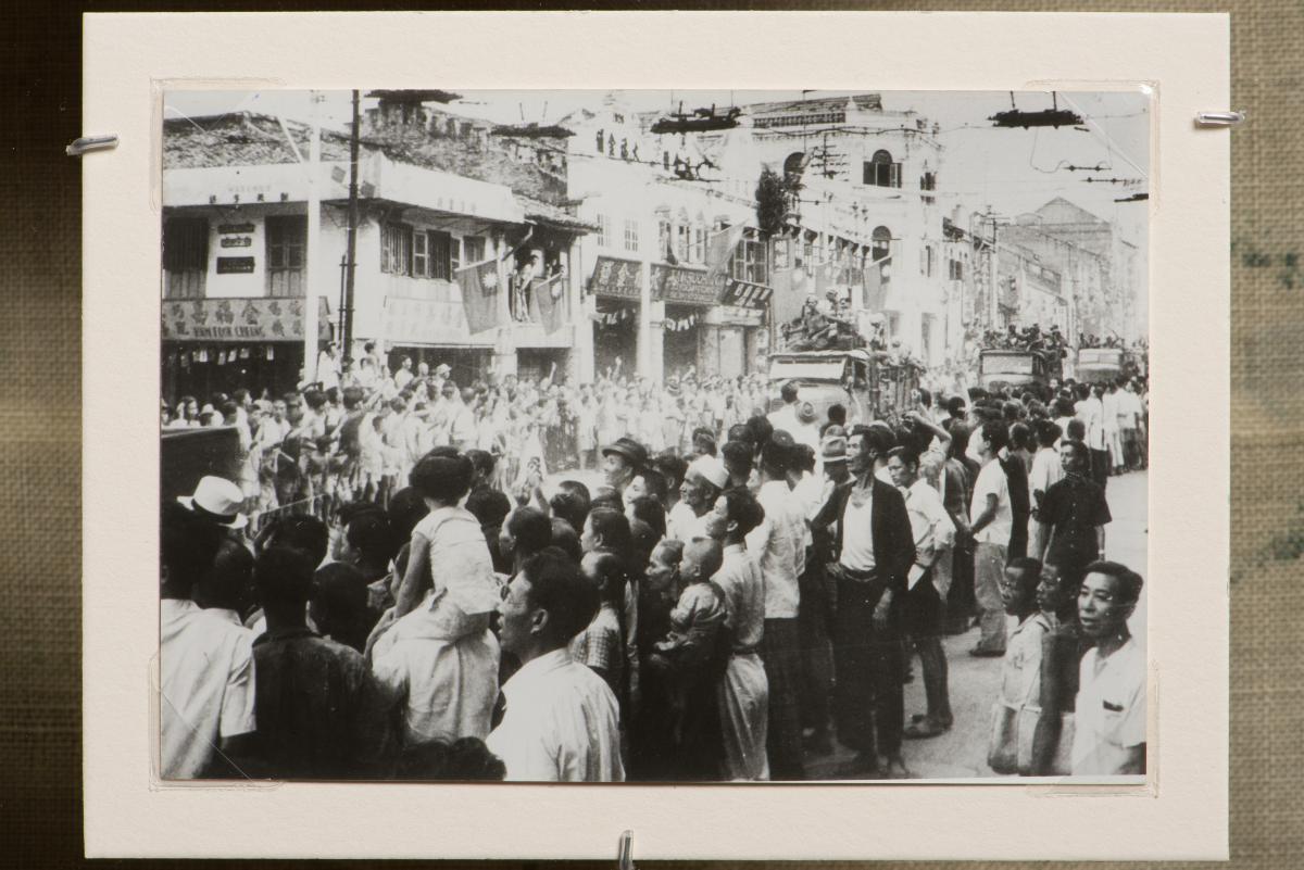 Civilians participating in a victory parade celebrating the Japanese surrender