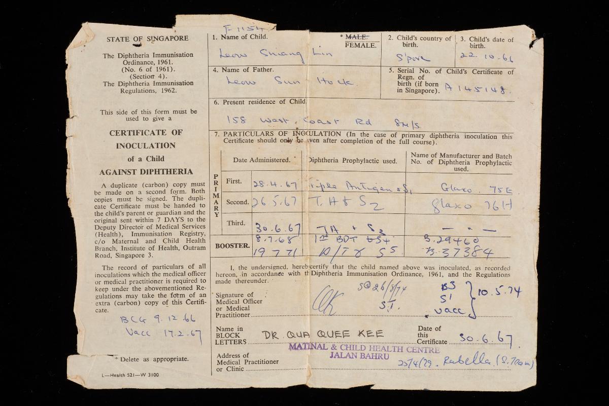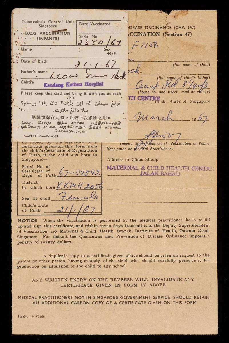 Diseases such as smallpox and cholera were widespread in Singapore during its early days as a British trading post. Vaccination against smallpox was made compulsory in the colony from 1868. In the post-war period, the British Military Administration fought the onset of contagious diseases, caused by the deplorable hygiene conditions, by enforcing compulsory vaccination on newborns. People who travelled to and from Singapore had to carry vaccination documents certifying that they were free of contagious diseases.