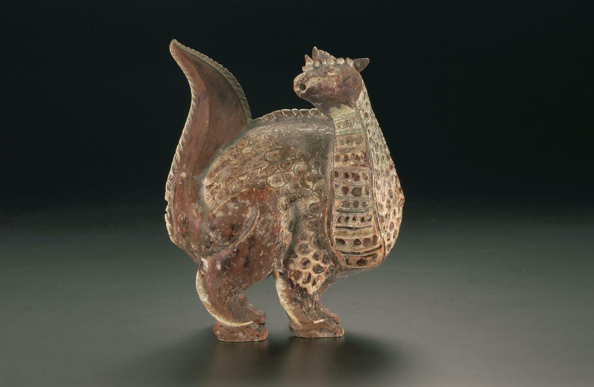 This large Buddist lion with well-moulded features is painted in green, yellow and black enamels. It was probably used for holding joss-sticks.