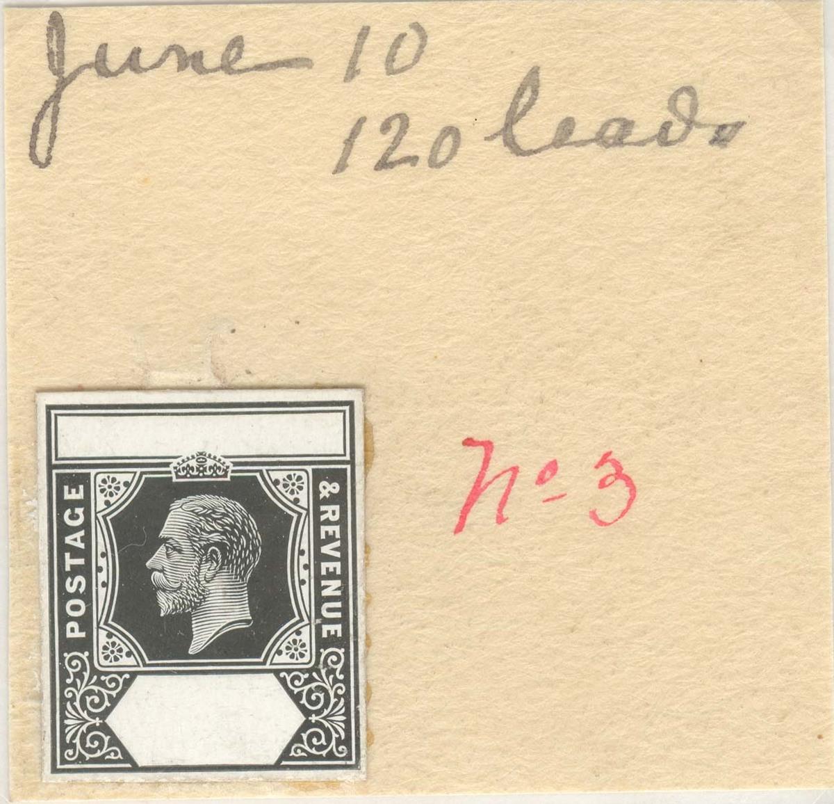 Name and duty plates 1912-23 die proofs of King George V values and master with blank tablet from Die II.