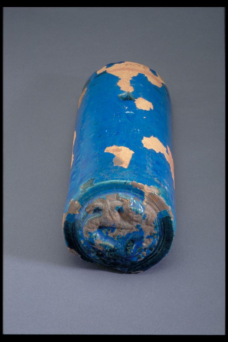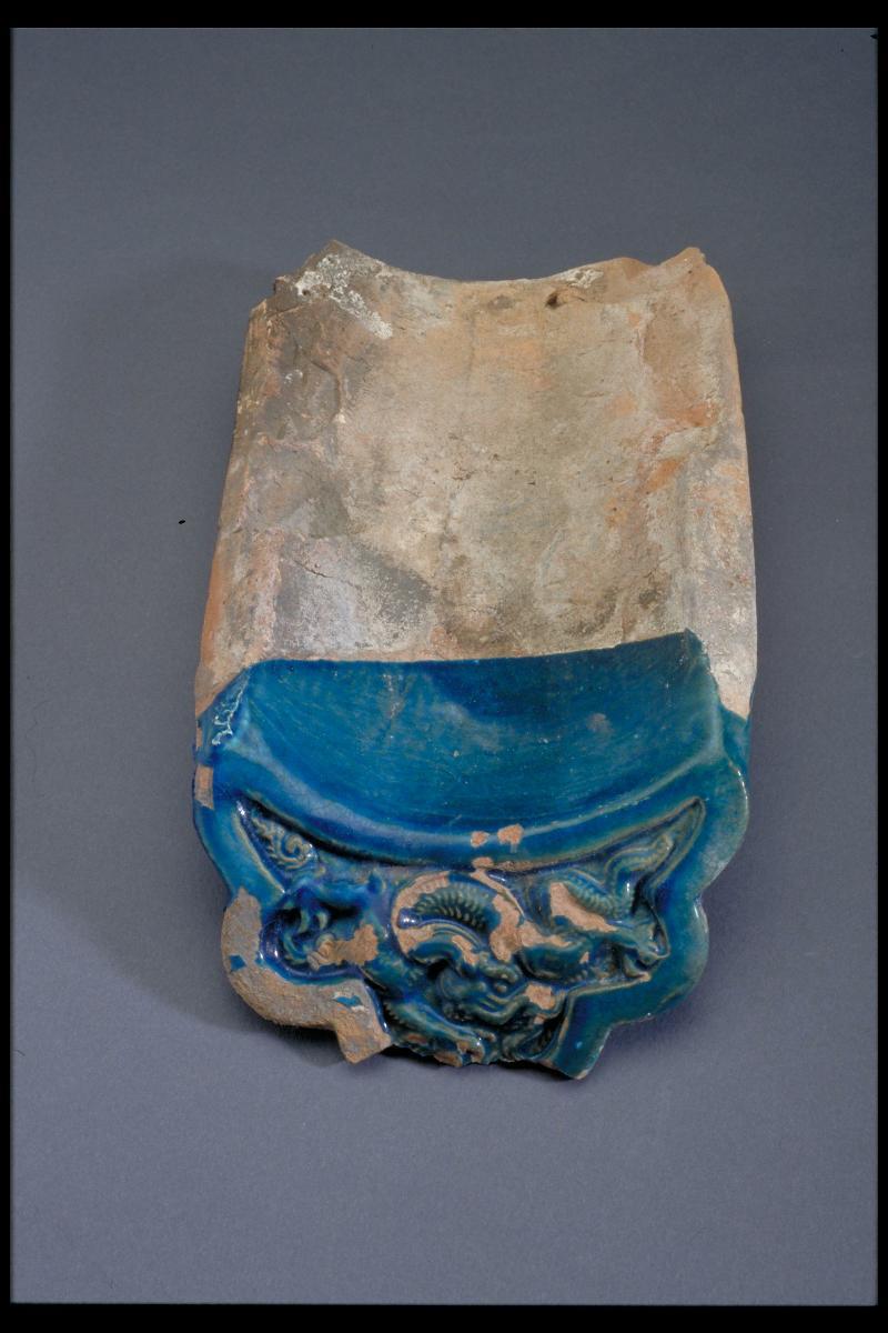 This circular, green-glazed roof tile is a Shiwan ware. Shiwan kilns, situated to the south-west of Foshan near Guangzhou on China's south coast, were renowned for roof tiles and ornaments, which was known to have been exported to Korea and Southeast Asia. The kilns were also popular for utilitarian wares and religious sculptures as well as for producing figures of folk heroes.