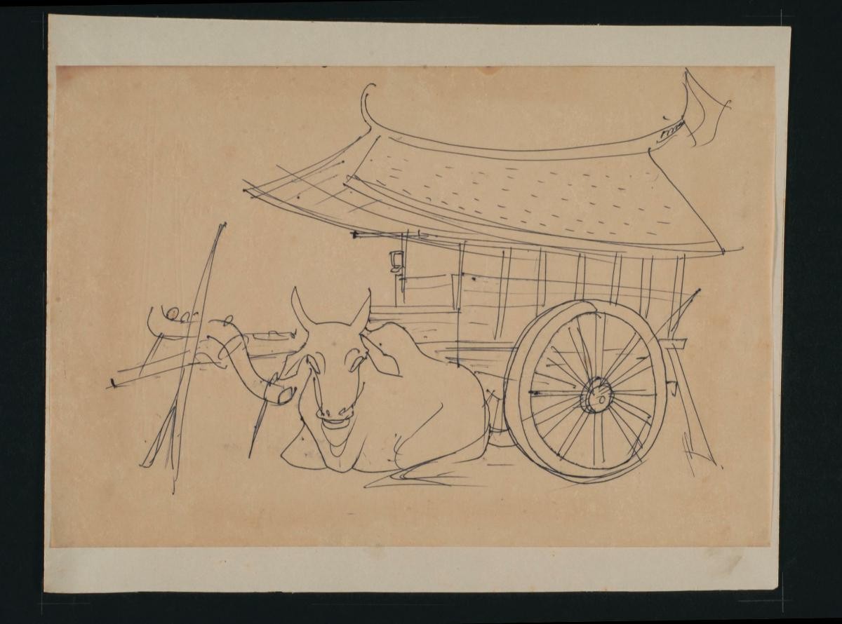This grey earthenware pottery, covered in white slip (liquid clay) and black pigment, served as burial ware or ‘mingqi'. This example illustrates the commoner's mode of transportation during the Han period.The practice of burying objects with the deceased stems from the belief in life after death.