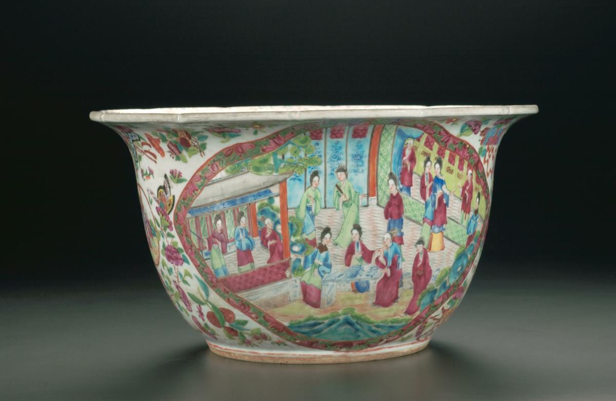This large flower pot has a flattened rim and several holes in the base. It is made from local clay and was fired in a traditional dragon kiln run by the Guan Huat Porcelain Factory in Jurong in Singapore. The Factory was set up by Mr. Lee Yong Lee and his friends in 1958. Although the factory has closed down in the 1990s, the dragon kiln is still being used by artists to fire ceramic works. The kiln is now under Jalan Bahar Clay Studios, off Jalan Bahar.