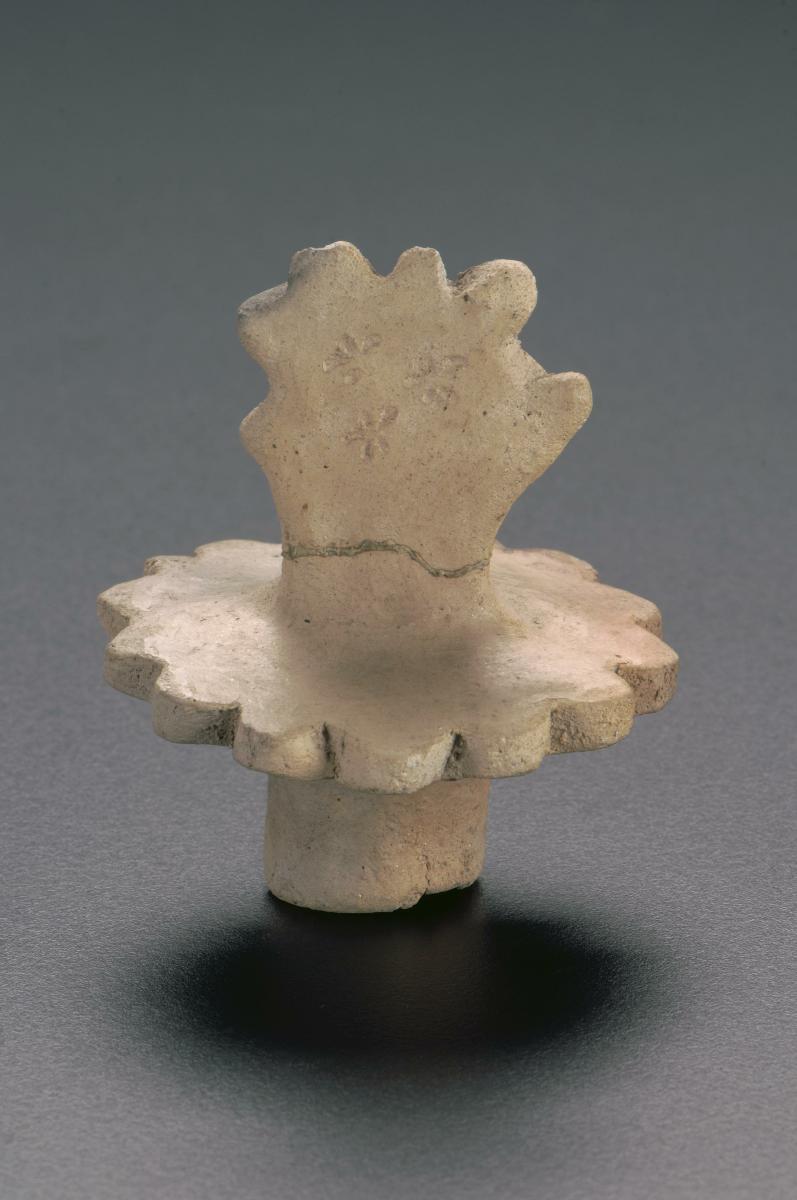 This 'kendi' with a tiered stopper has a thick neck and rounded base. It has no discerning decorations.The ‘kendi’ as it is known in Southeast Asia, was reproduced in metal and ceramics in many parts of the region. The name comes from the ancient Sanskrit name for water vessel and it is generally believed that the Southeast Asian ‘kendi’ developed from the Indian ‘kundika’. A typical kendi has a bulbous body, a neck which is used for holding the vessel and a spout. It was used for a wide range of purposes in addition to their primary function as a pouring and drinking vessel. It was also important as a ritual pouring vessel used in weddings and other ceremonies.