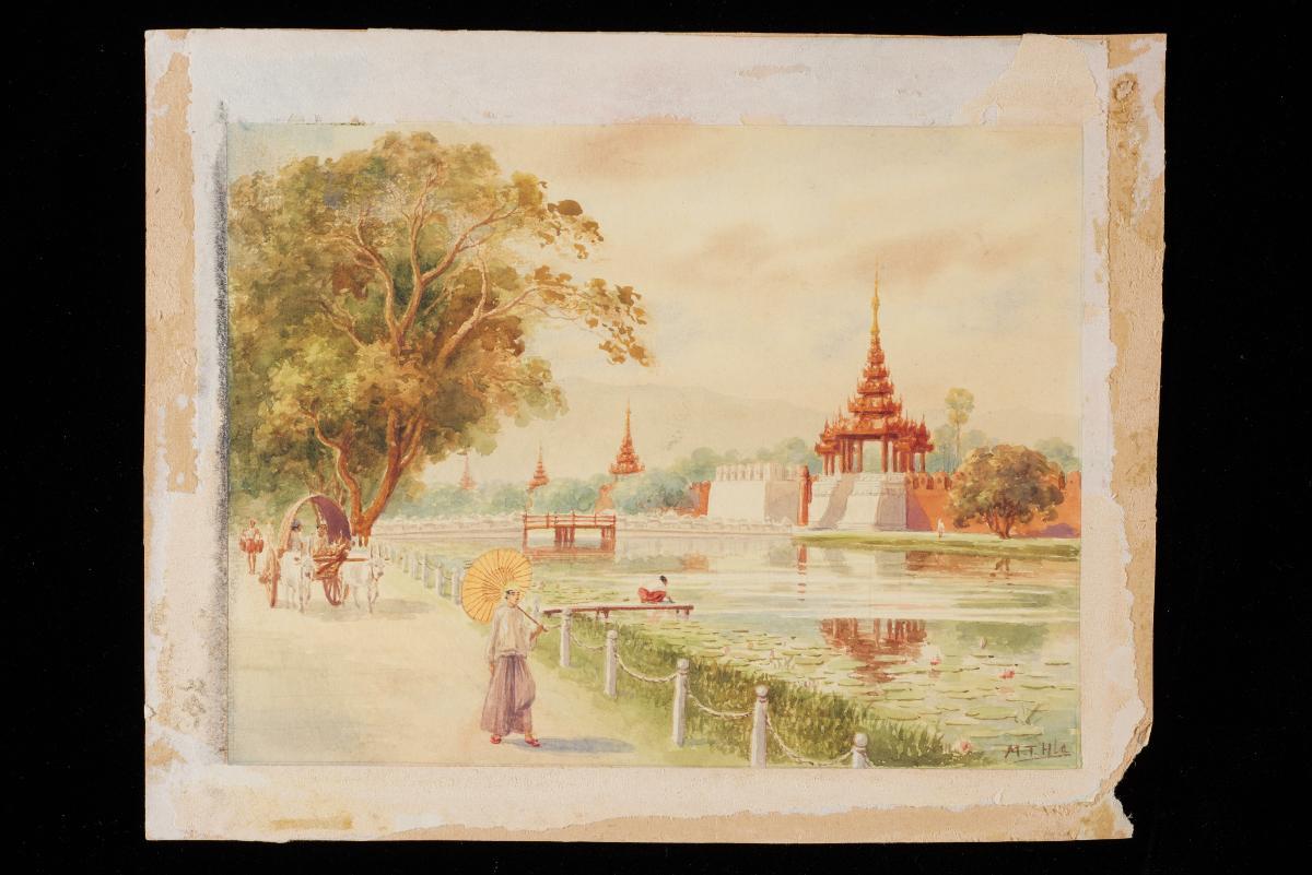 This green-glazed tower with a basin-like moat would have been part of a group of pottery tomb figures made for the ruling elite to provide for their afterlife. An assortment of animals can be found inside the basin and around the rim. Human figures who crowd the tower balcony include dancers, musicians and guards with crossbows. The tower's ridged roof and projecting balcony are supported by a complex structural system of cross-struts and bracketing.The practice of using lead-glazed burial wares had already started during the Han dynasty (206 BCE-220 CE) and it continued into the Ming period. The custom of making 'mingqi' or burial wares was an ancient practice. Elaborate groups of burial wares were also a display of wealth and social status.