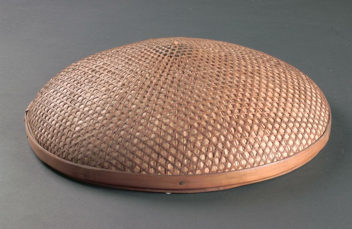 This Chinese wedding tea set (2005-00198-001), used during the traditional Chinese tea ceremony, is kept in a basket with a padded fabric lining and a cover.