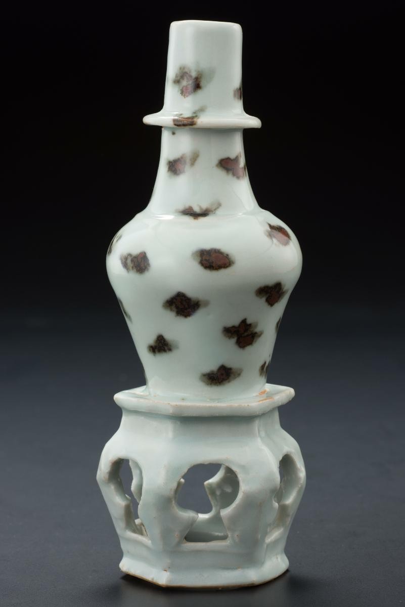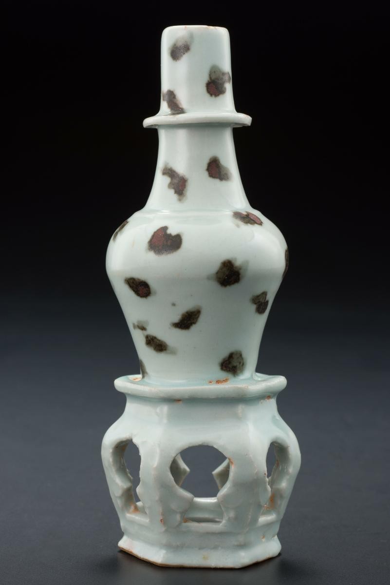 This large, cylindrical object is an example of Peranakan ware decorated with overglazed polychrome enamels. The finely painted designs comprise typical Chinese auspicious motifs such as phoenix, peony and plum blossoms. It was probably imported from the kilns of Jindezhen in China for Straits Chinese customers. It was probably used as umbrella stand or possibly as scroll holder.