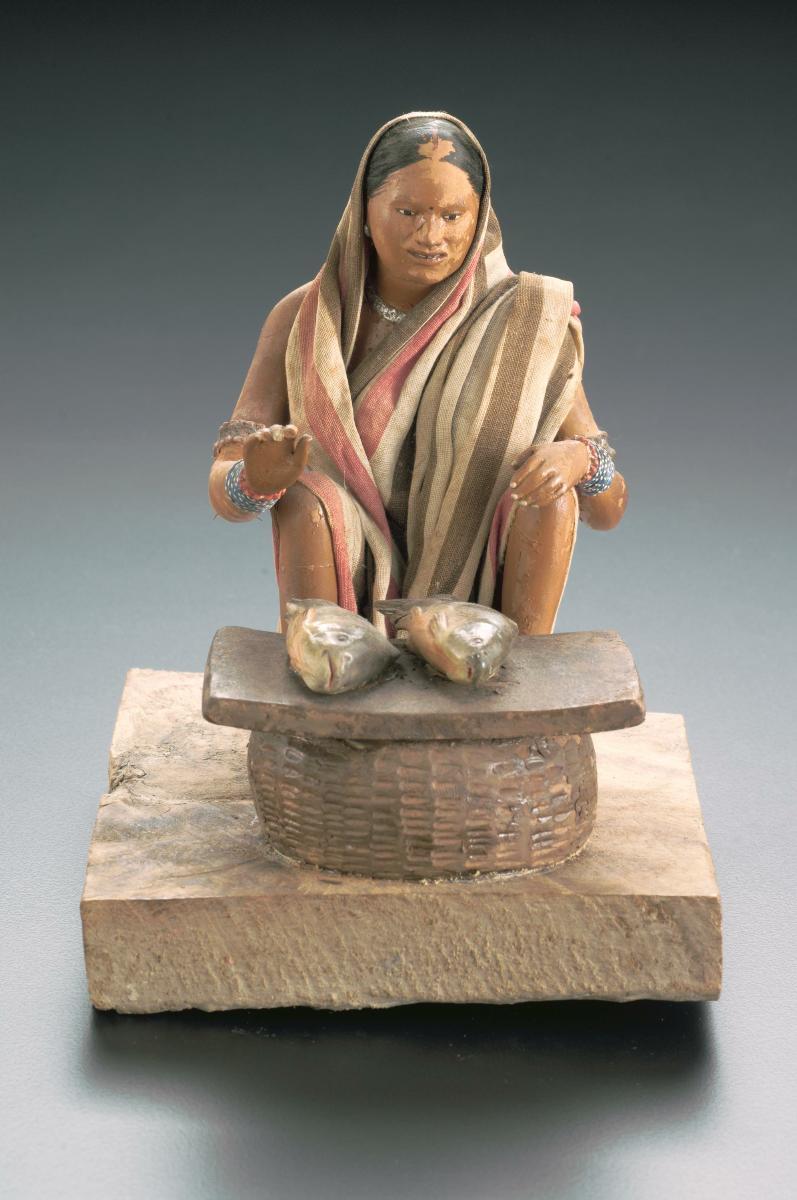 This hand-modelled stoneware sculpture of a man and two women is painted in an underglaze iron-brown.The royal cities of Sukhothai and Si Satchanalai in north-central Thailand were at the heart of one of the largest ceramic-producing centres in Southeast Asia during the 14th century. Si Satchanalai, which was later renamed Sawankhalok, came to refer to ceramics that originated from either of these two areas.