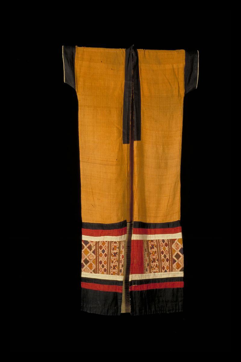 This Asho Chin tunic was made on a backstrap loom in two sections, which were joined down the centre. The cotton was indigo-dyed and the patterns were woven with silk in bright pink, green and white across the centre. The tunic was worn until recently by an elderly woman in the village of Don in Taunggyi, Rakhine State.Chin garments with such fine weaving reflect the maturity and status of their owners. Such pieces are rare finds these days, although there appears to be some interest in reviving their production amongst the Chin communities living in Rakhine State.