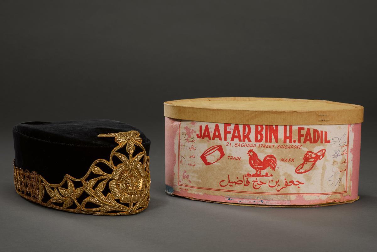 This stand is used to store the 'songkok' (cap) and to help it keep its shape when not worn. The top of the stand is covered with a white crocheted songkok. The bottom half has a small compartment perhaps used to store prayer beads. In Southeast Asia, some pilgrims would wear a white cap or songkok haji and adopt the title ‘haji’ to indicate that they have performed the pilgrimage to Mecca or the 'haj'. The haj is a religious obligation that is expected of Muslims who can afford it. This pilgrimage is performed in the last month of the Islamic calendar.