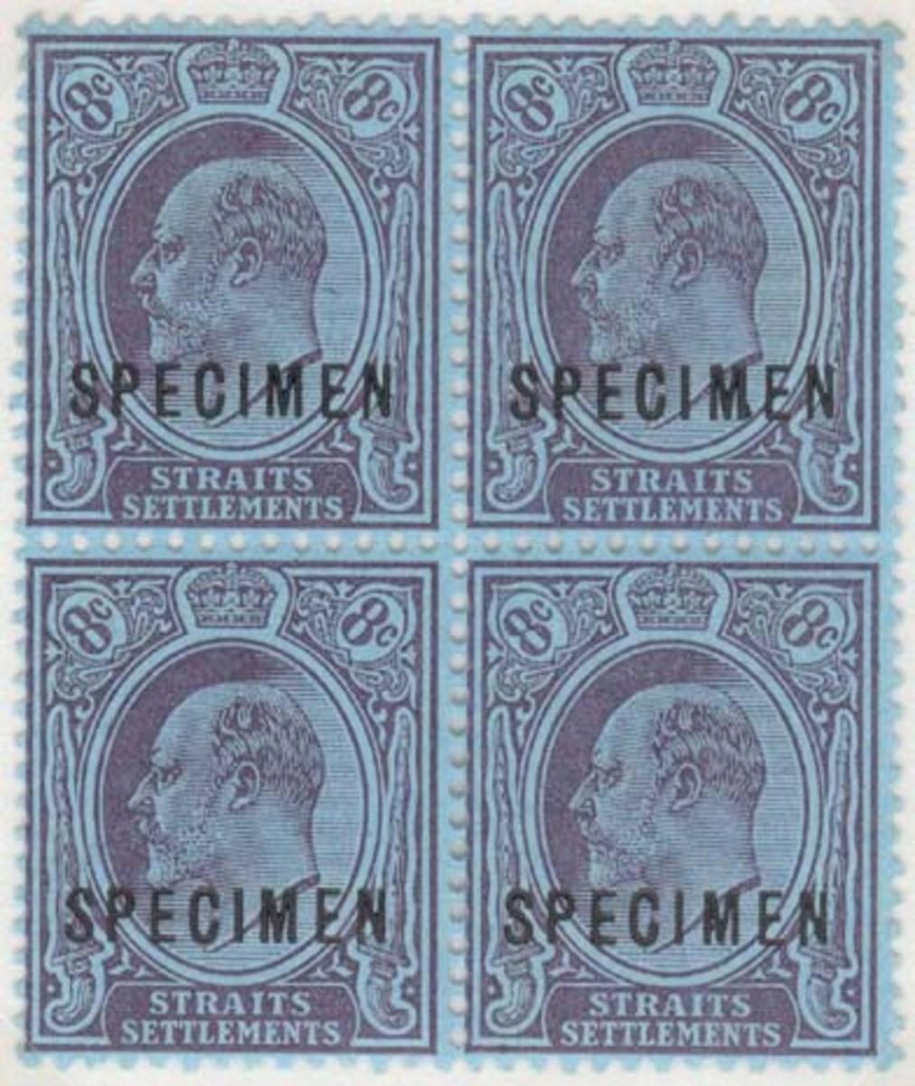 King Edward VII 4-cent local design specimen showing nipah palms for Malacca.