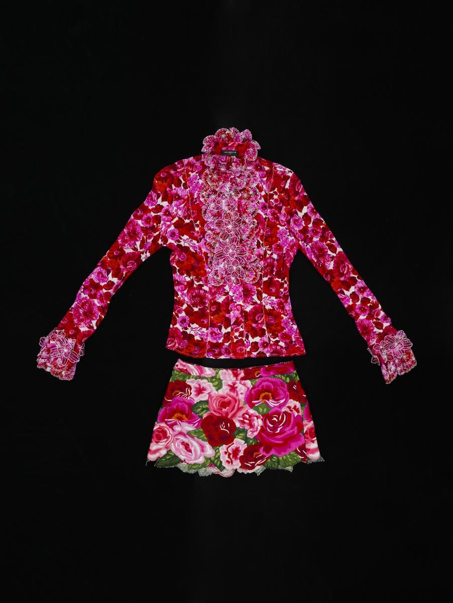 This pink skirt by Yves Saint Laurent is paired with a matching jacket. It was part of his 1988 Spring/Summer haute couture collection, which featured pieces inspired by the works of famous artists such as Van Gogh and Picasso.