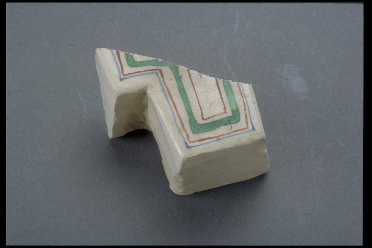 This shard with overglaze enamel decoration was originally a tile made for the Javanese market during the 15th century. Tiles were specially commissioned for the Majapahit centres in East Java. Similar tiles still embellish the walls, minarets, and gates in the mosques of Demak and Kudus today. By the 14th century, Vietnam was exporting large volumes of wares to Southeast Asia, notably Indonesia, Malaysia and the Philippines.