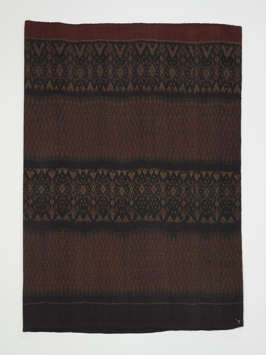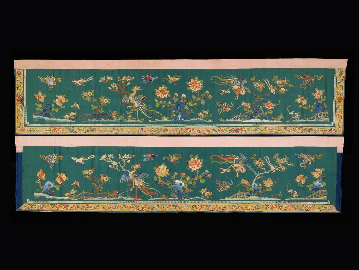 Stylistically, this cotton painted and printed Buddhist textile is a combination of various styles hitherto unknown. It features alternating rows of Buddha images placed under rows of decorative arches in different styles, which seems to have a votive significance. A round- shaped stupa placed on a lotus base has a finial that resembles Tibetan and Nepalese stupas while the image of the seated Buddha in ‘bhumisparsha mudra’ (earth-witnessing gesture) is Pala in inspiration. The headgear of the winged flying figures flanking the stupa, while Himalayan in style are European influenced. The cusped arch, floral capital and decorative motifs on it, under which these figures are placed, are Islamic in origin and reveal a Sultanate style of the east coast of India.Such motifs have never been seen coming together, therefore this textile is a rare example of Buddhist material with a wide range of influences from different parts of Asia.