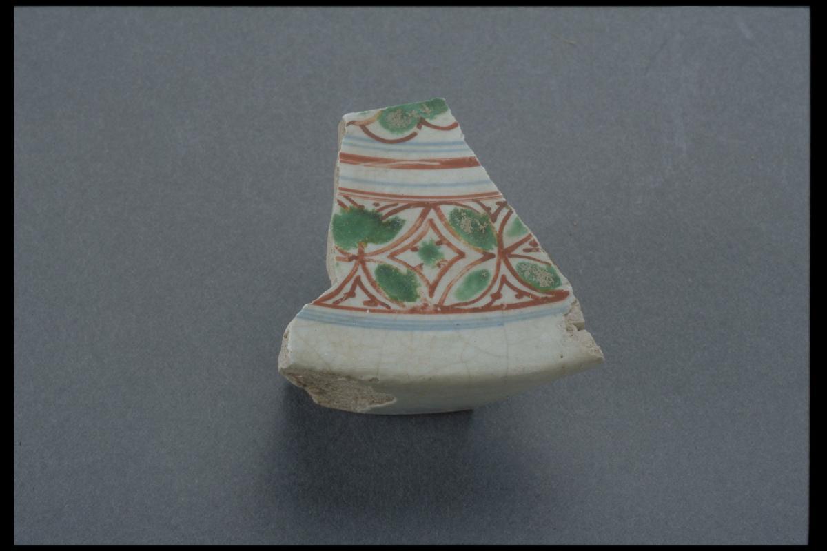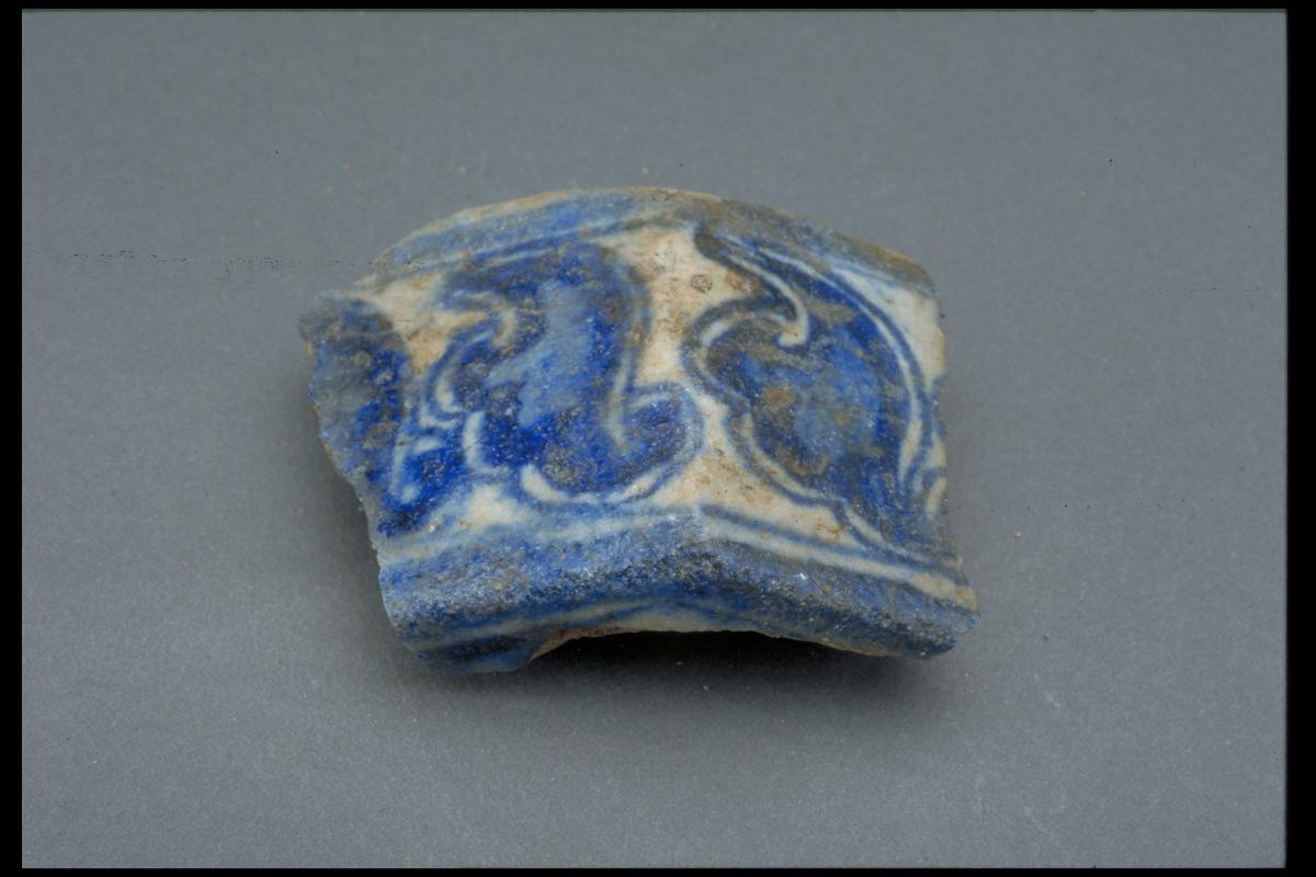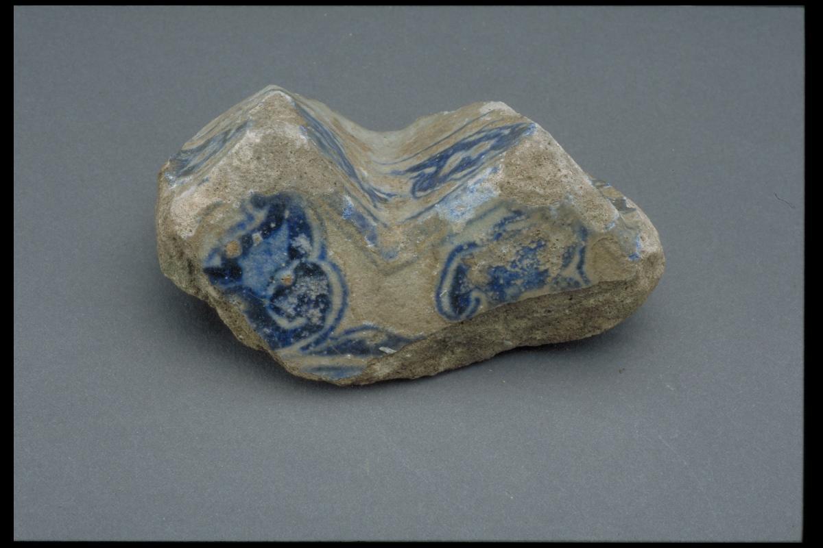 This shard with underglaze blue decoration was originally a tile made for the Javanese market during the 15th century. The cobalt possibly came from West Asia. Tiles were specially commissioned for the Majapahit centres in East Java. Similar tiles still embellish the walls, minarets, and gates in the mosques of Demak and Kudus today. By the 14th century, Vietnam was exporting large volumes of wares to Southeast Asia, notably Indonesia, Malaysia and the Philippines. It was the only Southeast Asian country to produce blue and white ceramics, a tradition which originated in China.