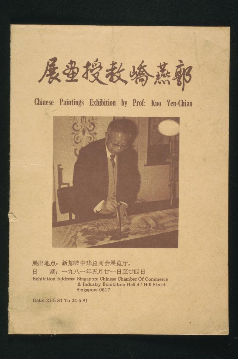 This catalogue was for an exhibition of Chinese paintings by Chang Dai-chien held at the Apollo Hotel. The event was presented by the Arts Gallery of Calligraphy & Painting with support from the Shin Min Daily News.The artefact most probably belonged to Ho Kok Hoe, a local architect and artist who learned to paint from his father Ho Kwong Yew, who was also an architect and artist, and his grandfather, who was a calligrapher. The younger Ho was a prominent architect who, while working for the family’s architectural firm Ho Kwong Yew & Sons, was responsible for designing Malaysia’s Muzium Negara (National Museum) in the 1960s. He was also actively involved in the local arts scene, especially during his two stints (1954–1967 and 1981–1983) as president of the Singapore Art Society. The Society was founded in October 1949 to help spread the practice and appreciation of art, improve the quality of local art, promote art exchanges with other countries and create opportunities for artists to learn and exhibit their works. The founding members of the society were, namely: Richard Walker (Art Superintendent); Charles Sulisbury (British Council); C. A. Gibson-Hill (Raffles Library and Museum); Francis Thomas (Chairman, Inter-School Art Exhibition Committee); Liu Kang (President, Society of Chinese Artists); Professor Roy Morell (University of Malaya); Mrs. Phillis Mackenzie; Suri bin Mohyani; and Tan Khoon Seng.