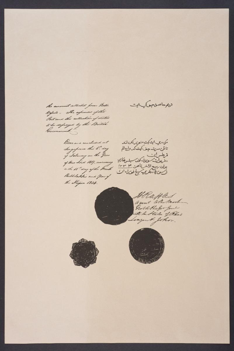 This illuminated album page contains a letter written by Mughal court librarian and calligrapher, ‘Abd al-Rashid. The letter appeals to his patron, the emperor Shah Jahan, for his salary. The page consists of nine lines of fine nastaliq script on a gold ground enclosed in the cloud motifs while the border consists of floral illumination in colours and gold. The nastaliq script is the most often used script by Indian calligraphers, due to the close proximity with Persia (present day Iran). This letter from Mughal India is dated 1050AH or 1640 AD.