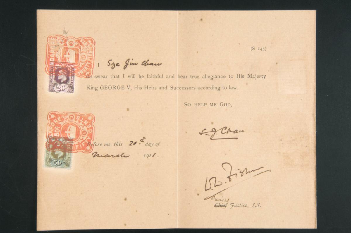 This is an oath sworn by S. Ramasamy on 2 April 1928 in the matter of the petition of K. P. K. Menon. It is part of a collection of legal documents from the 19th and early 20th centuries which provides a glimpse into the work of the notable personalities who left their mark on Singapore’s legal history, and the economic and other transactions undertaken by ordinary immigrants in 19th century Singapore that tell stories of misfortune and indebtedness which would otherwise have disappeared from history.