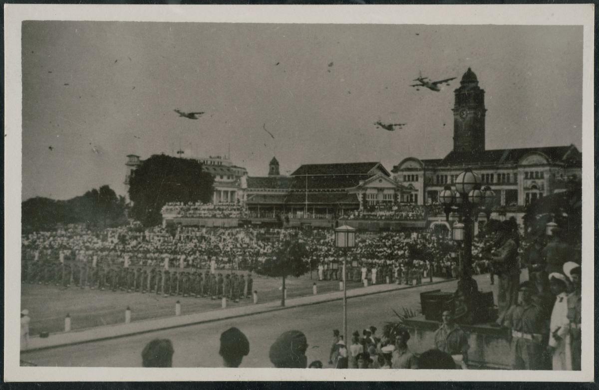 The Japanese Occupation in Singapore officially ended with the formal surrender ceremony held in the Municipal Building (present-day City Hall) on 12 September 1945. Lord Louis Mountbatten, Supreme Allied Commander (Southeast Asia), accepted the Japanese surrender by General Itagaki Seishirō at the event. A grand Allied Victory Parade was held following the surrender to celebrate the occasion and remind the local populace that their former colonial masters had returned.