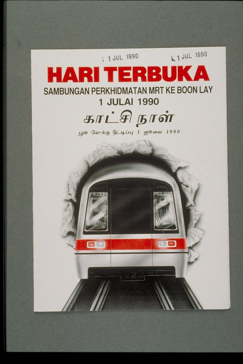 The Mass Rapid Transit (MRT) railway system in Singapore was conceived by city planners as early as 1967. After deciding that a rail system was necessary to meet the demands of a land-scarce nation, the Government commenced the $5 billion construction of the Mass Rapid Transit network, Singapore’s largest public works project at that time. The opening of Boon Lay Station on the East West Line on 6 July 1990 marked the completion of the system.