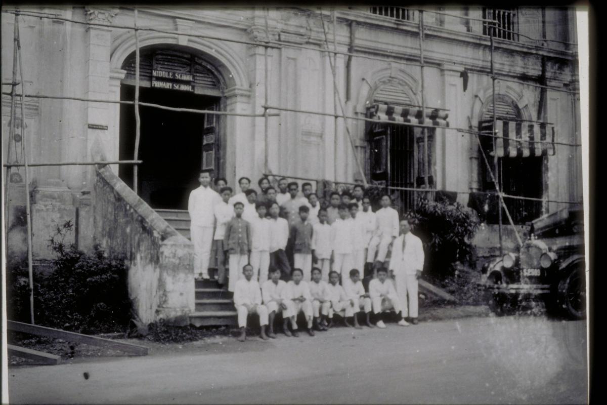 Glass negative depicting Lim Beng Quan in a car at Zion Road
