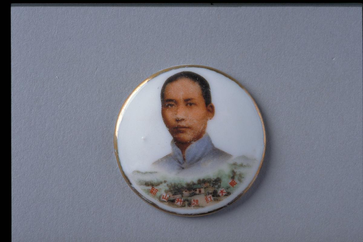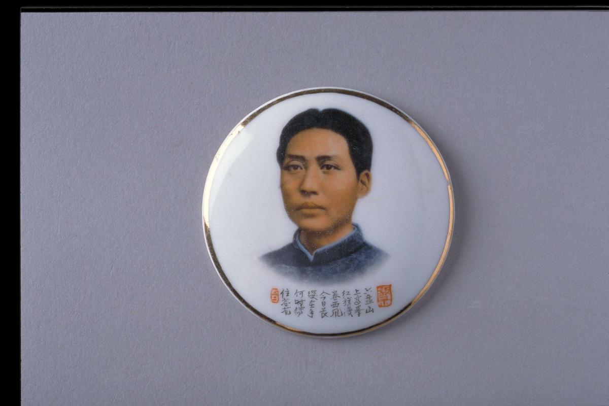Huge numbers of badges were produced at the height of the Cultural Revolution, from 1966 to 1969. Materials ranging from plastic and bamboo to gold were used to manufacture badges but aluminium was by far the most common material. Porcelain badges such as these were actually produced for only a short span of time (about a year). Their fragility may have contributed to the decline in their production. This one in chipped in places and not in very good condition.It has been estimated that up to five billion badges were made, sporting over 100,000 different designs. Many different organisations produced badges that included the central government, army units, factories and revolutionary committees. Badges were created by different groups as an emblem of identity, to commemorate special events or to serve as rewards for model workers.