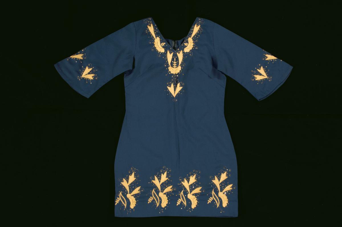 This sari is made from synthetic fabric. Synthetic fabrics were introduced in Singapore from the mid-1960s. Manufactured in Japan and later South Korea, these fabrics were usually made from nylon. Indian women accustomed to wearing cotton and silk saris took to these synthetic materials in a big way. Not only were they considered “modern”, outfits made from these fabrics were also easy to maintain and most do not require ironing. They were thus especially popular with working women.