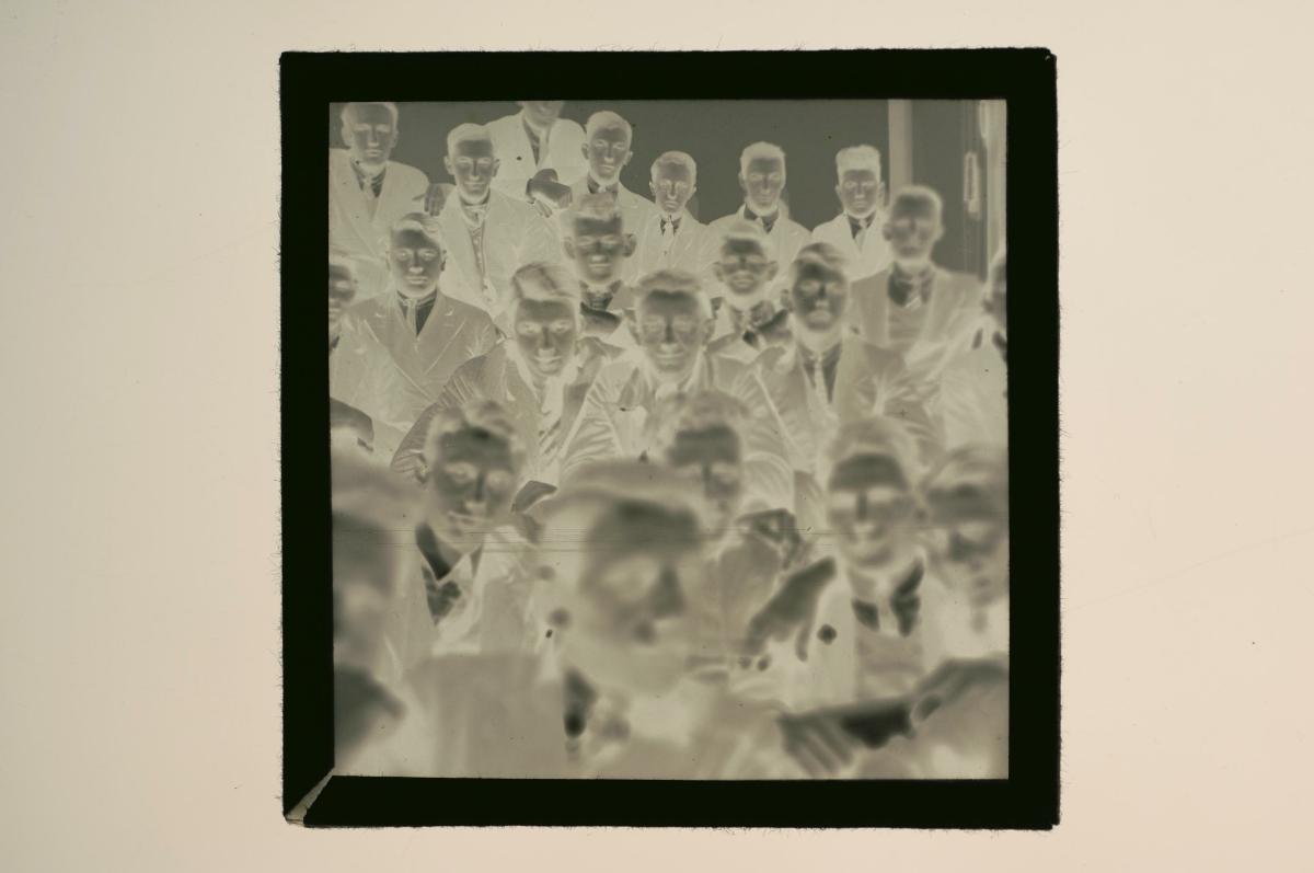 Glass negative depicting people at leisure
